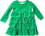 - Hanna Andersson Girls Green Velvet Long-Sleeve Tiered Ruffle Dress Size 90/3T