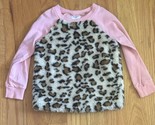- Hanna Andersson Girls Leopard Print Faux Fur Pink Sweatshirt Top Size 5 (110)