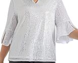 - Hanna Nikole Plus Size Bell Sleeve V Neck Blouse Silver White Size 16Plus
