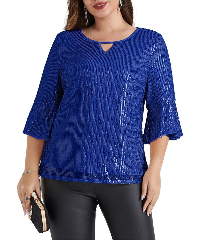 Fashion Design: Sequin Tops for Women features 3/4 Split sleeve bell sleeve, Cutout at the Crew neck makes you more sexy. The flowy and soft sheer mesh make it more sexy while you walk, show your perfect figure.