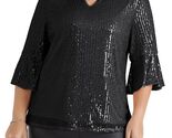 - Hanna Nikole Women's Sequin Party Blouse Crew Neck 3/4 Sleeve Black Size 24Plus