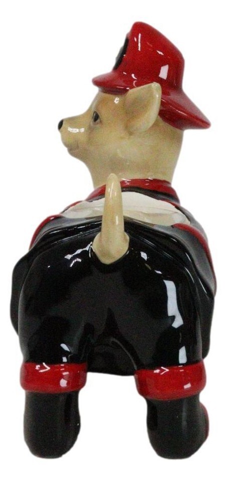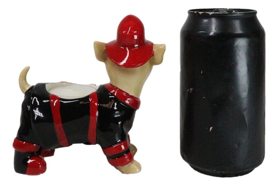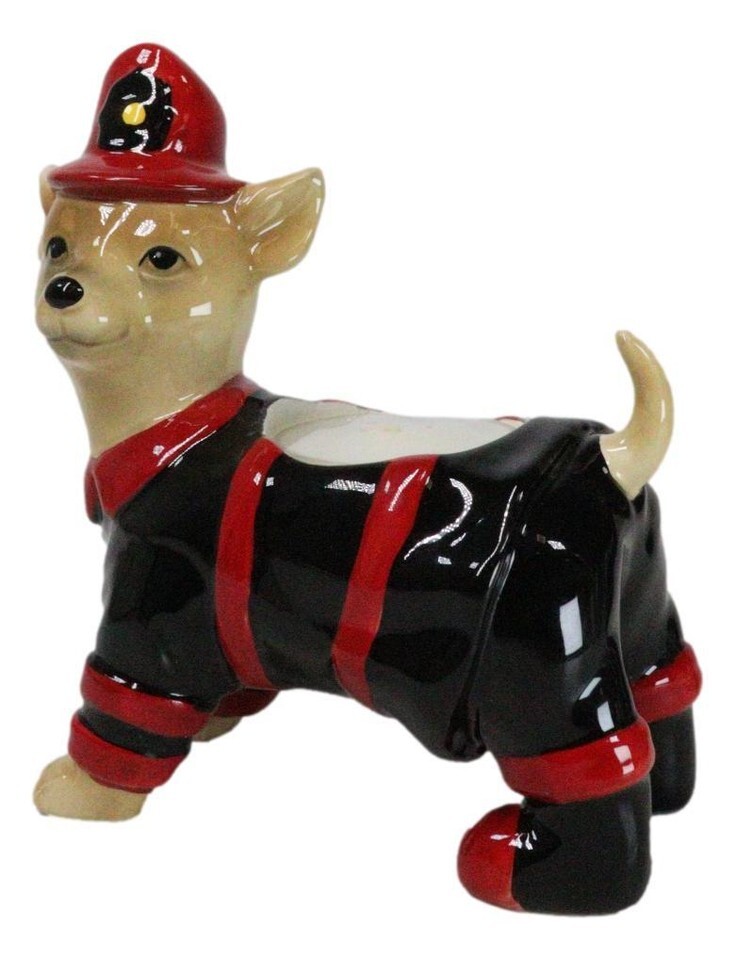 ? Celebrate in heroic style with our "Happy Birthday Fireman Frank" Ceramic Tea Light Votive Candle Holder! Dressed in striking black and red fire gear, this charming dog-themed holder adds a touch of fun and bravery to any birthday bash. Crafted from high-quality ceramic, it holds a tea light or votive candle, casting a warm and cheerful glow. Perfect for honoring the special day with a nod to your favorite firefighter or adding a whimsical touch to your celebration.