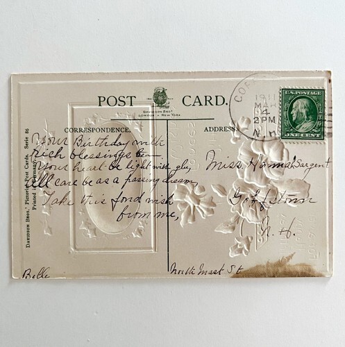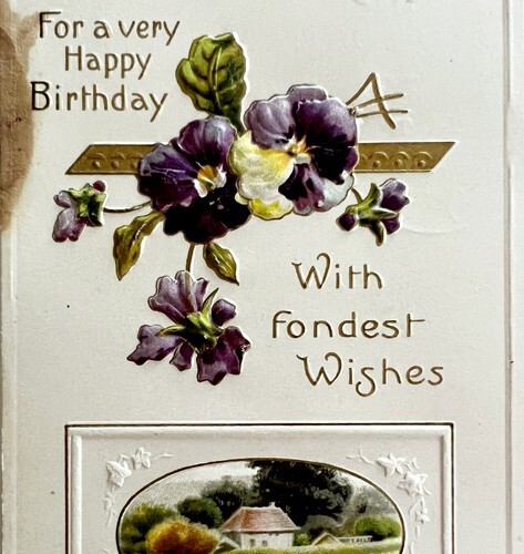- Happy Birthday Greeting Postcard 1910 Farmhouse Flower Germany Embossed PCBG3D