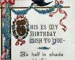 Happy Birthday Wish Greeting Postcard 1910 BAG Artist Card Bird Embossed PCBG3D