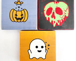 - Happy Halloween Wood Decorations Lot Of 3 Pumpkin Ghost Skull 3.5" x 3.5" F3
