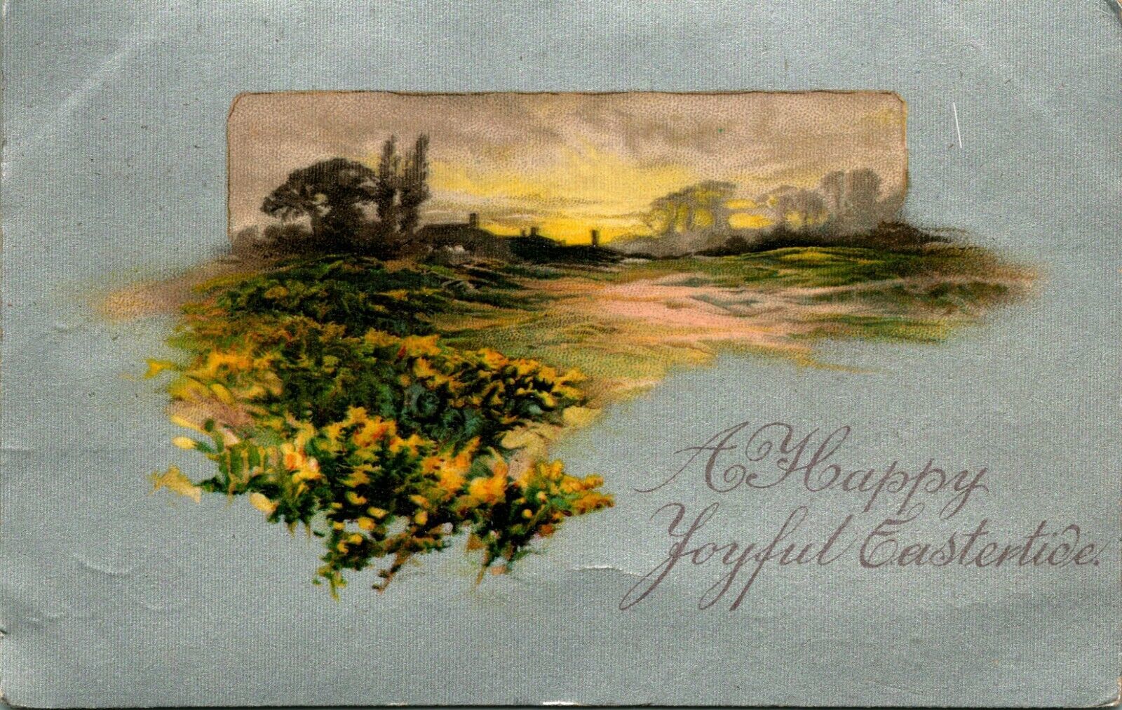 - Happy Joyful Eastertide Spring Meadow Scene Flowers Textured 1908 DB Postcard E4