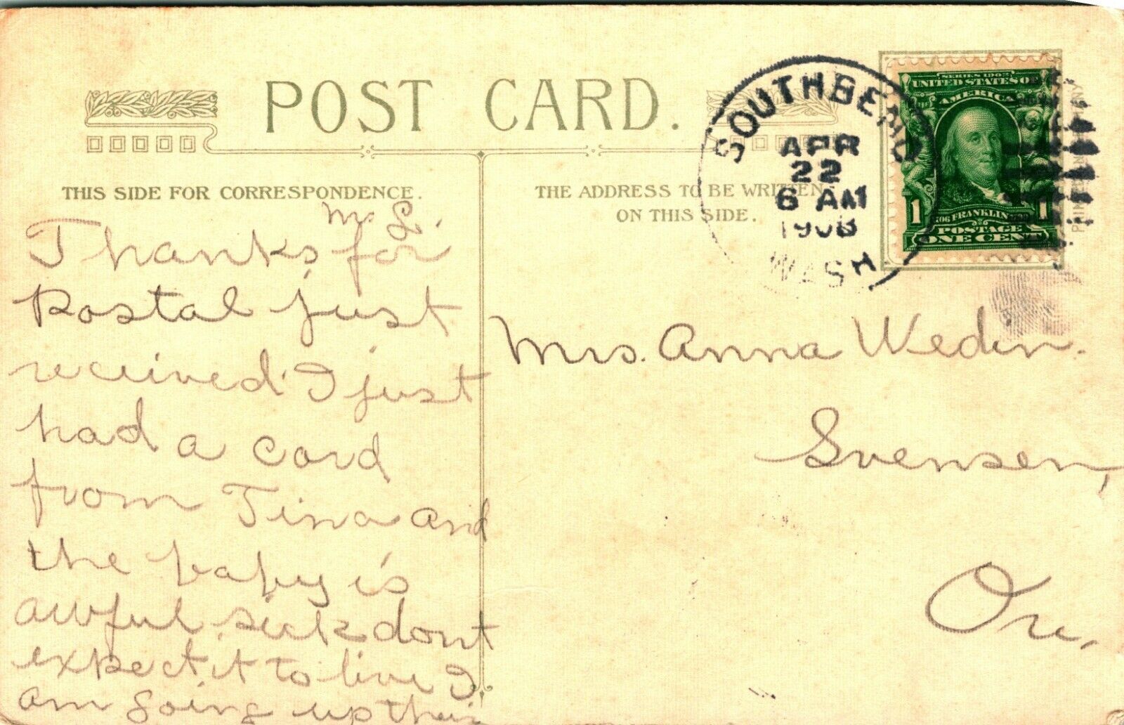 Normal wear associated with an old postcard it might have creases, a corner bump, ink on the front etc.