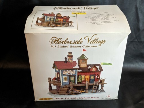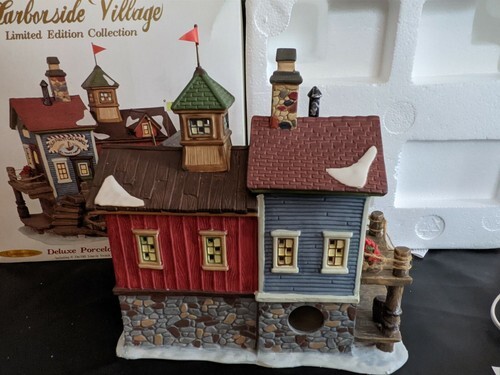 Up for sale is a used in box Harborside Village Deluxe Lighted House Old Nautical Wares by Celebrations.