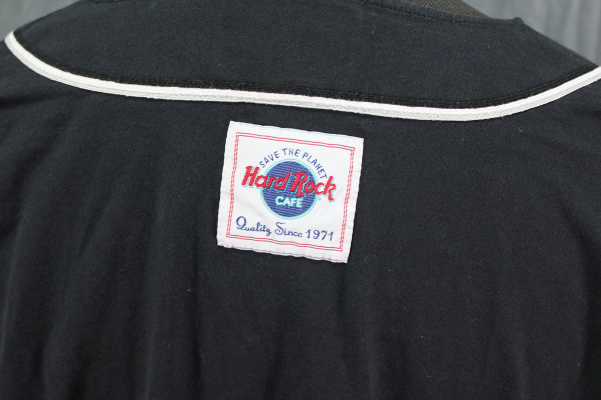 Up for sale is a vintage Hard Rock Cafe baseball jersey. It has a black base colour with grey sleeves. The front left side of the jersey has the the Hard Rock Cafe logo stitched in with St Thomas underneath. What a great jersey do not miss out on it.