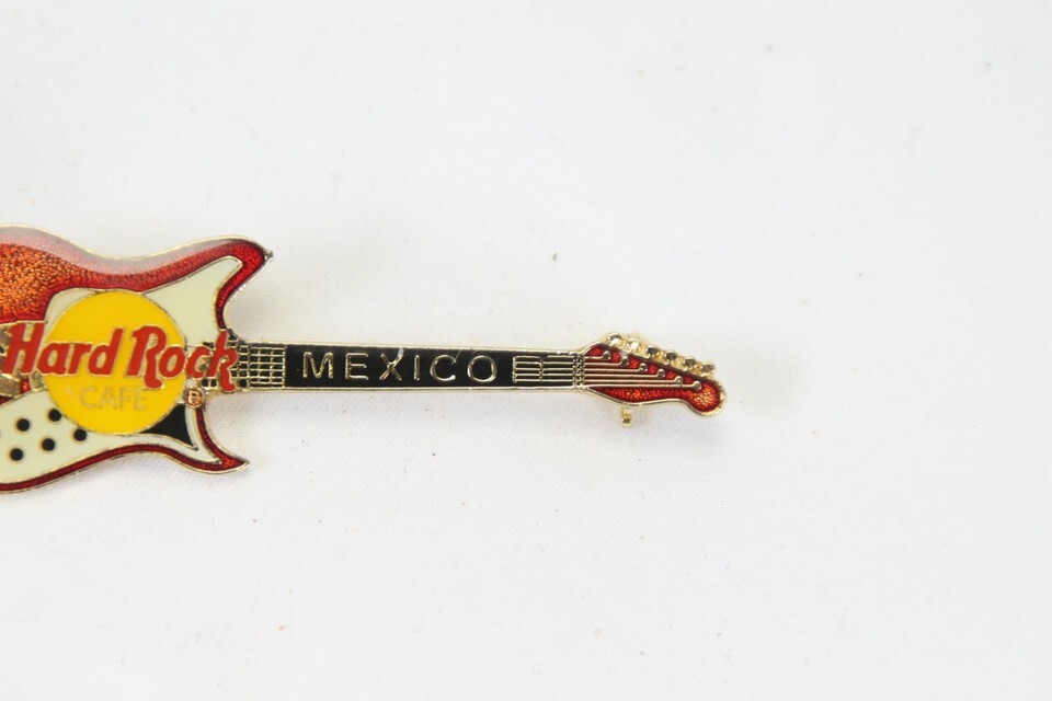 - Hard Rock Cafe Pin Guitar Mexico Red Metallic Hat Lapel Pin 2.3" long