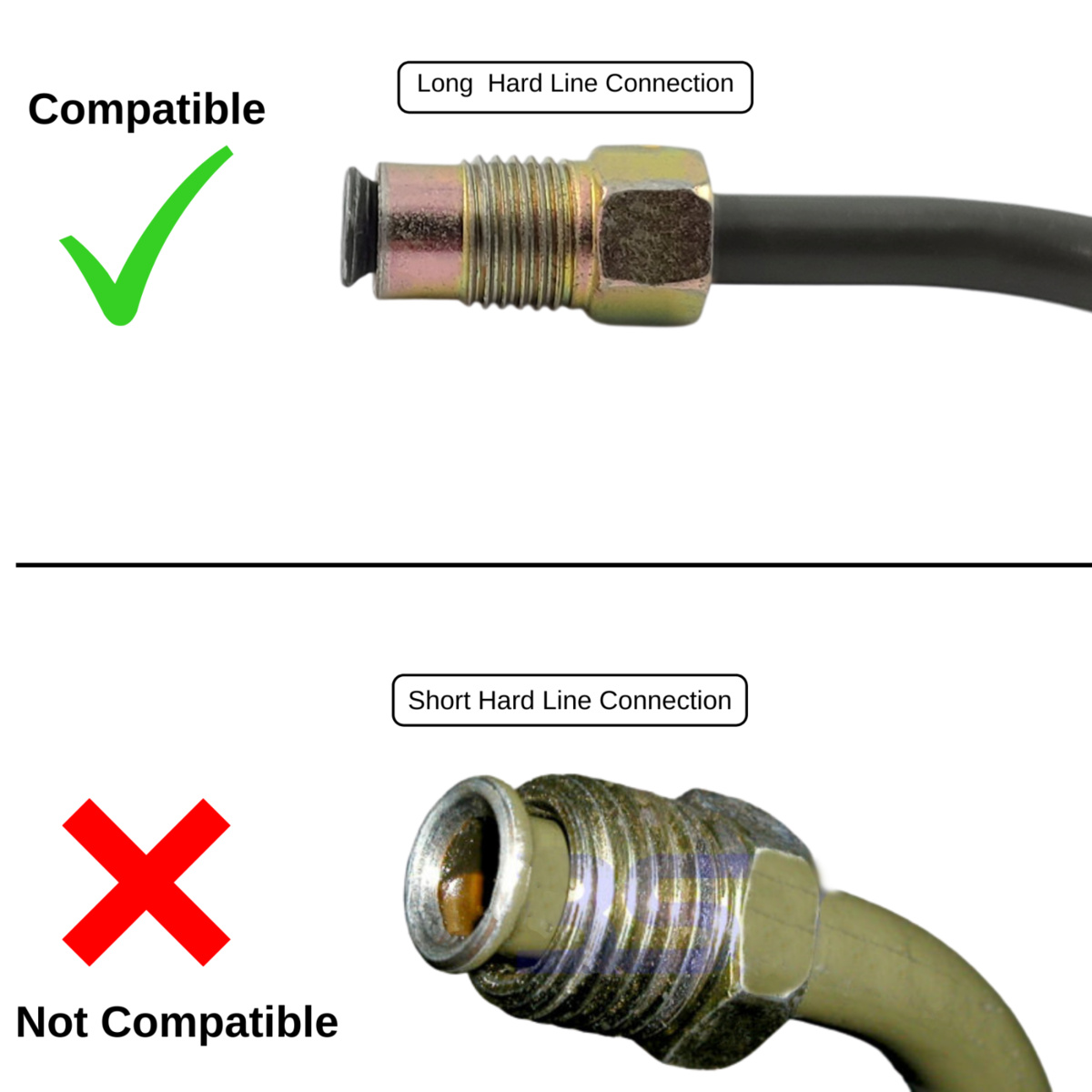 Note: This fitting adapter is only compatible with Hondas and Acuras with a long end connection on the hardline. Please review the pictures and confirm the size before ordering.