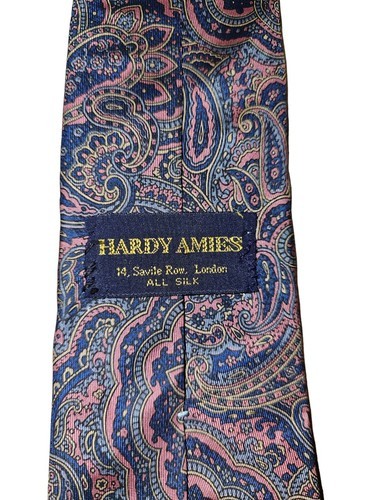 - Hardy Amies London All Silk Men's Paisley Pink Blue Gold Tie 58"
