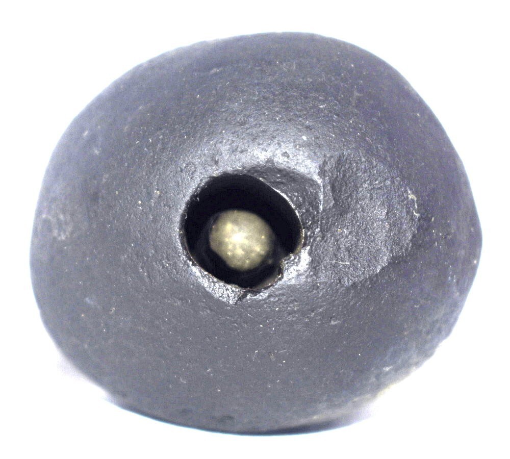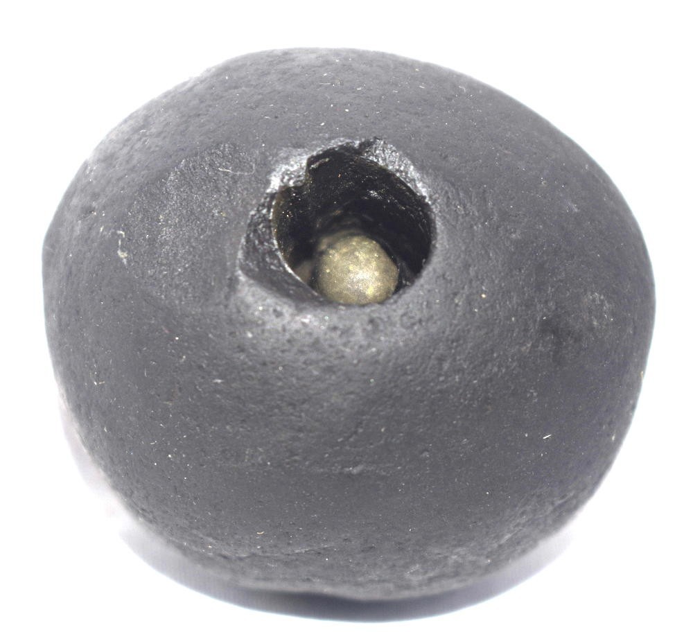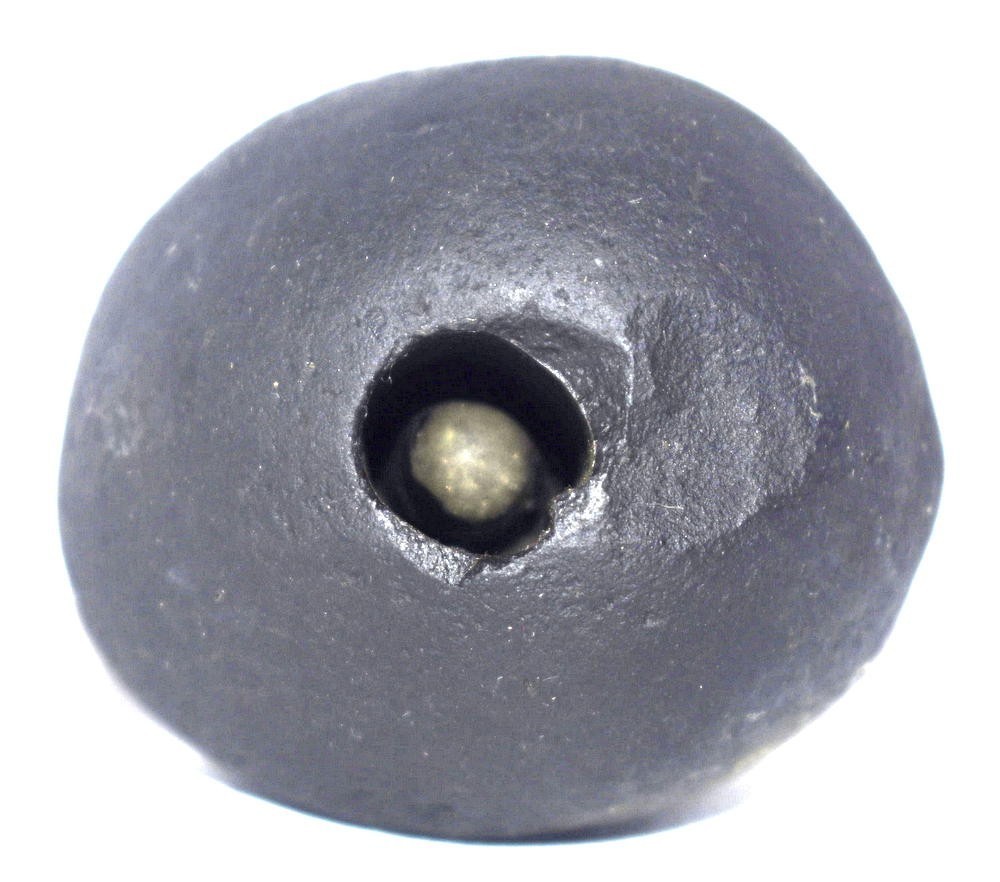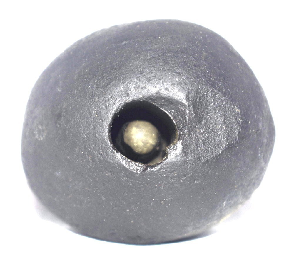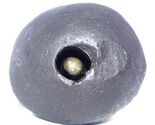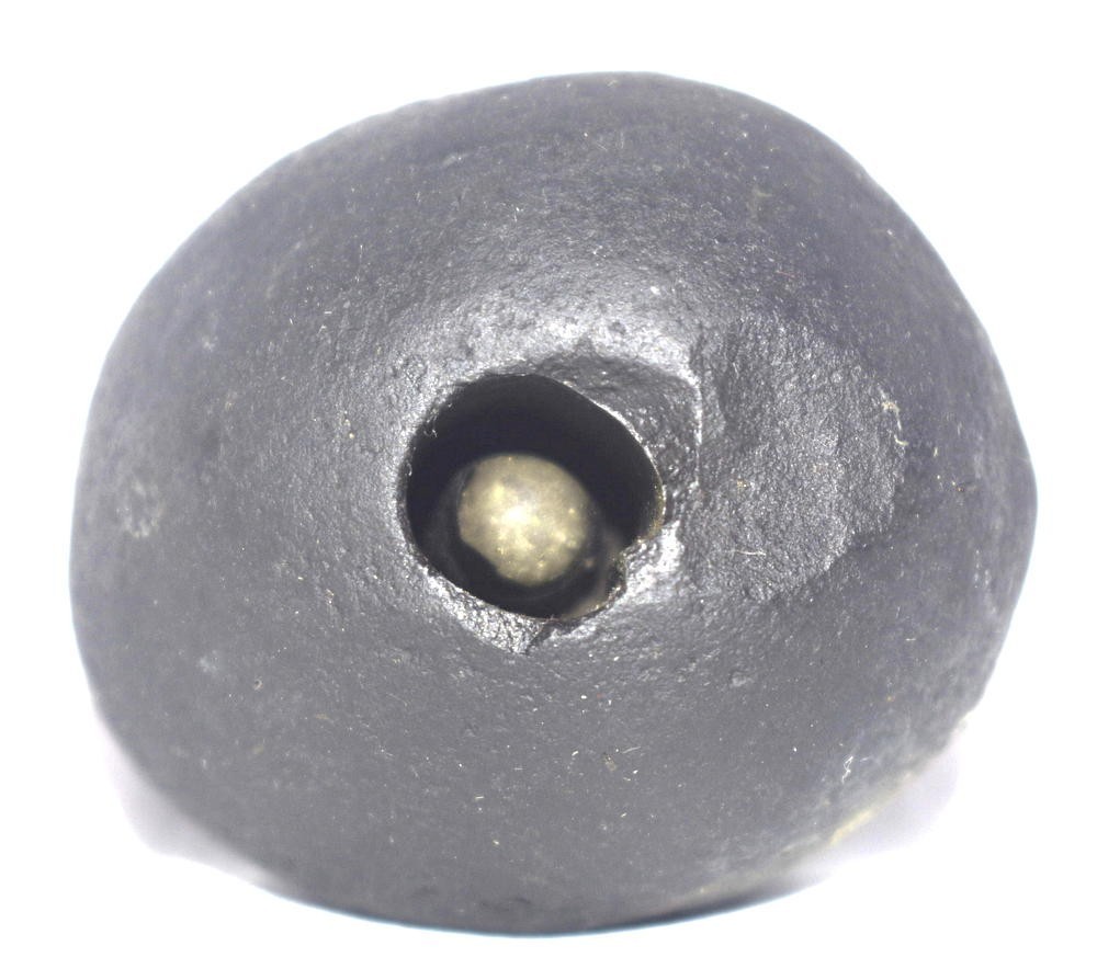 Harihar Shaligram Black and smooth body , Single opening on top side having Clear shiva Nabhi Rekha , golden color , Golden and yellow color dot?s . Product Name : Harihara Shaligram Origin : Gandaki River Nepal Weight : 141 gms Dimension : 2.25 inches * 2 inches Lakshan Shaloka : shivanAbhistasya mUrdhni pruShTe vA api bhavedyadi| etaddhariharam vidyAt sukha soubhAgyavardhanam|| Meaning : Shaligram having shiva nabhi rekha at top or bottom; no chakra , is known as HariHara Shaligram Description : Harihara is the combined representation of Vishnu (Hari) and Shiva (Hara) , Harihara is thus revered by both Vaishnavites and Shaivites as a form of the Supreme God.