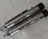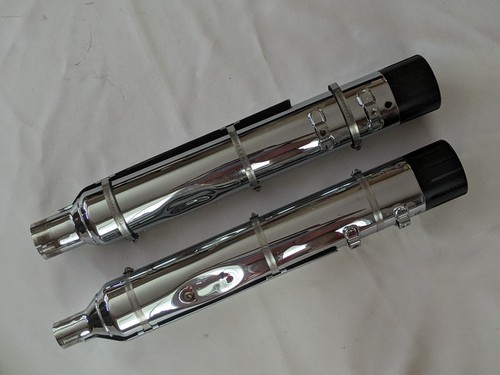 Enhance your Harley Davidson motorcycle's performance with these high-quality slip-on mufflers. The mufflers come in a sleek chrome finish and have black tips that add to the aesthetic appeal of your bike. These mufflers have a universal fitment, making them compatible with most street motorcycles. Crafted from durable stainless steel, these mufflers are easy to replace and feature a slip-on mounting style. The mufflers have an outlet diameter of 4 inches and a diameter of 1.75 inches and 2.5 inches. These mufflers are suitable for left and right rear placement on your motorcycle. Upgrade your motorcycle's exhaust system with these premium mufflers.