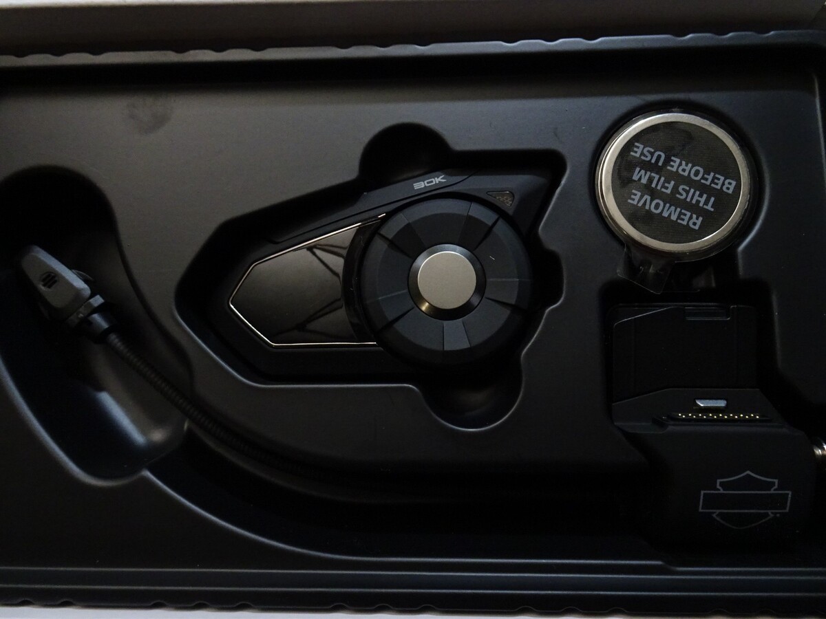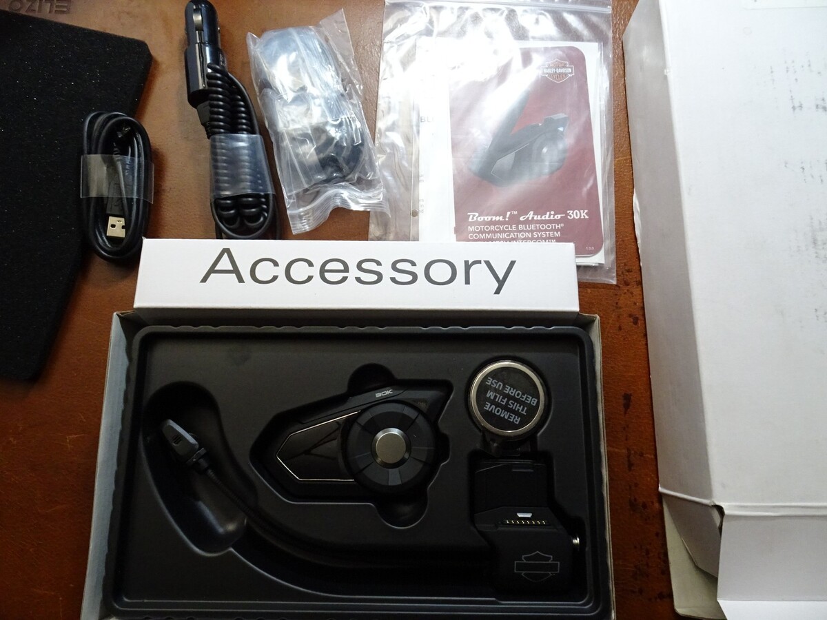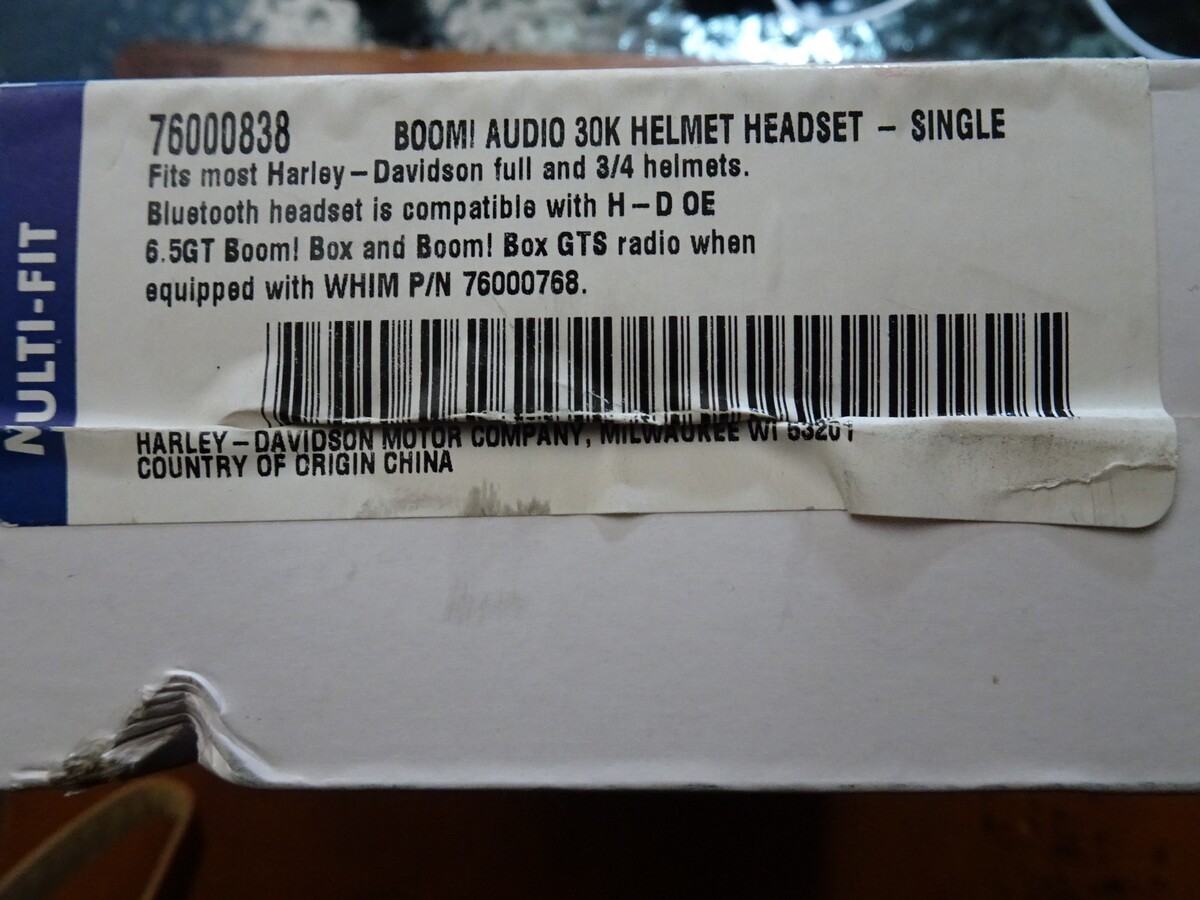 This listing is for a Harley-Davidson Boom Audio 30K Helmet Headset (Single). The item is new and unused. All components are included exactly as shown in the photos. The headset and accessories are still in factory packaging, and the main unit still has the protective film attached.