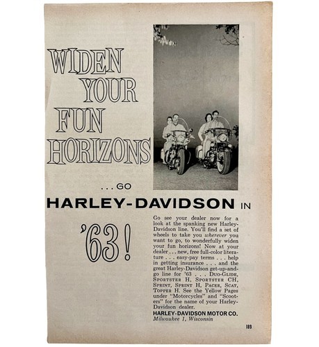 Harley Davidson Duo Glide Advertisement 1963 Motorcycle Sportster 189 LGBinHD2