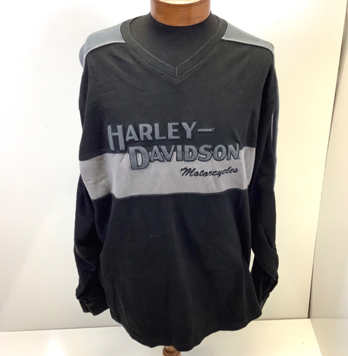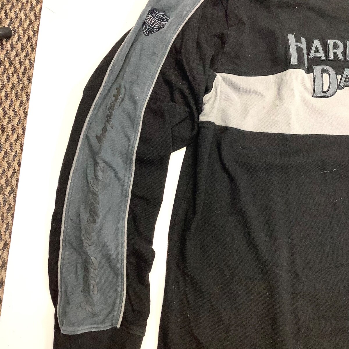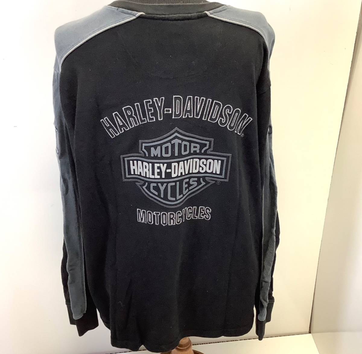 - Harley Davidson Embroidered Mens 2XL Pullover Long Sleeve Shirt Black Gray