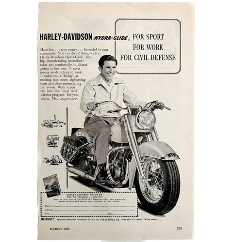- Harley Davidson Hydra Glide Advertisement 1951 Motorcycle Civil Defense LGBinHD2