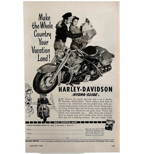 - Harley Davidson Hydra Glide Advertisement 1951 Motorcycle Vacation Land LGBinHD2