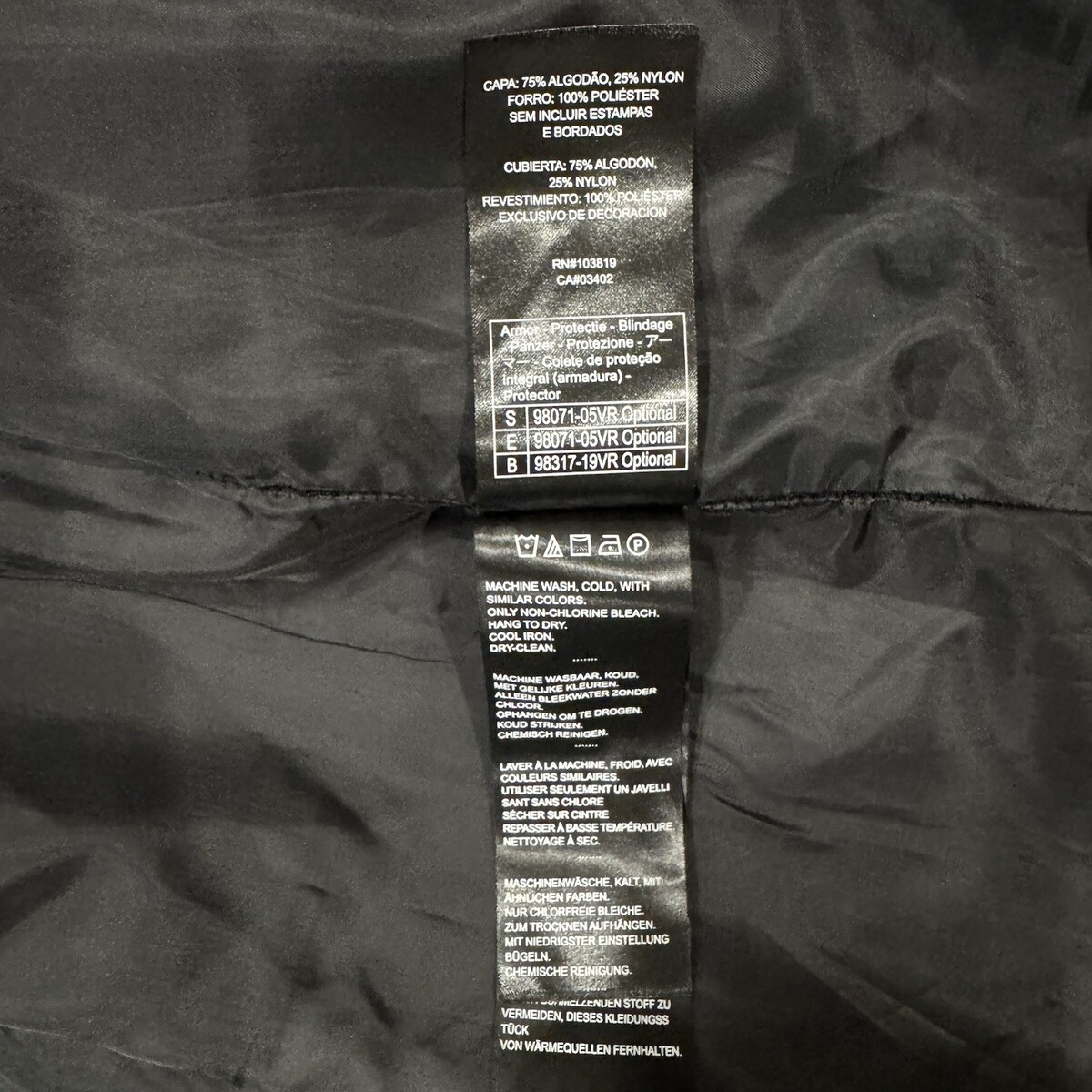This jacket is in good preowned condition and freshly laundered. The collar has some fading. It has armor sleeves, but there are no armor pads included. Please see all photos for details and measurements.