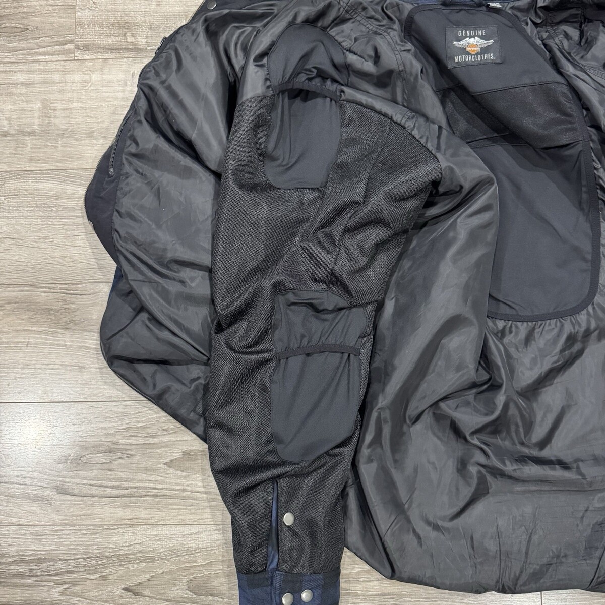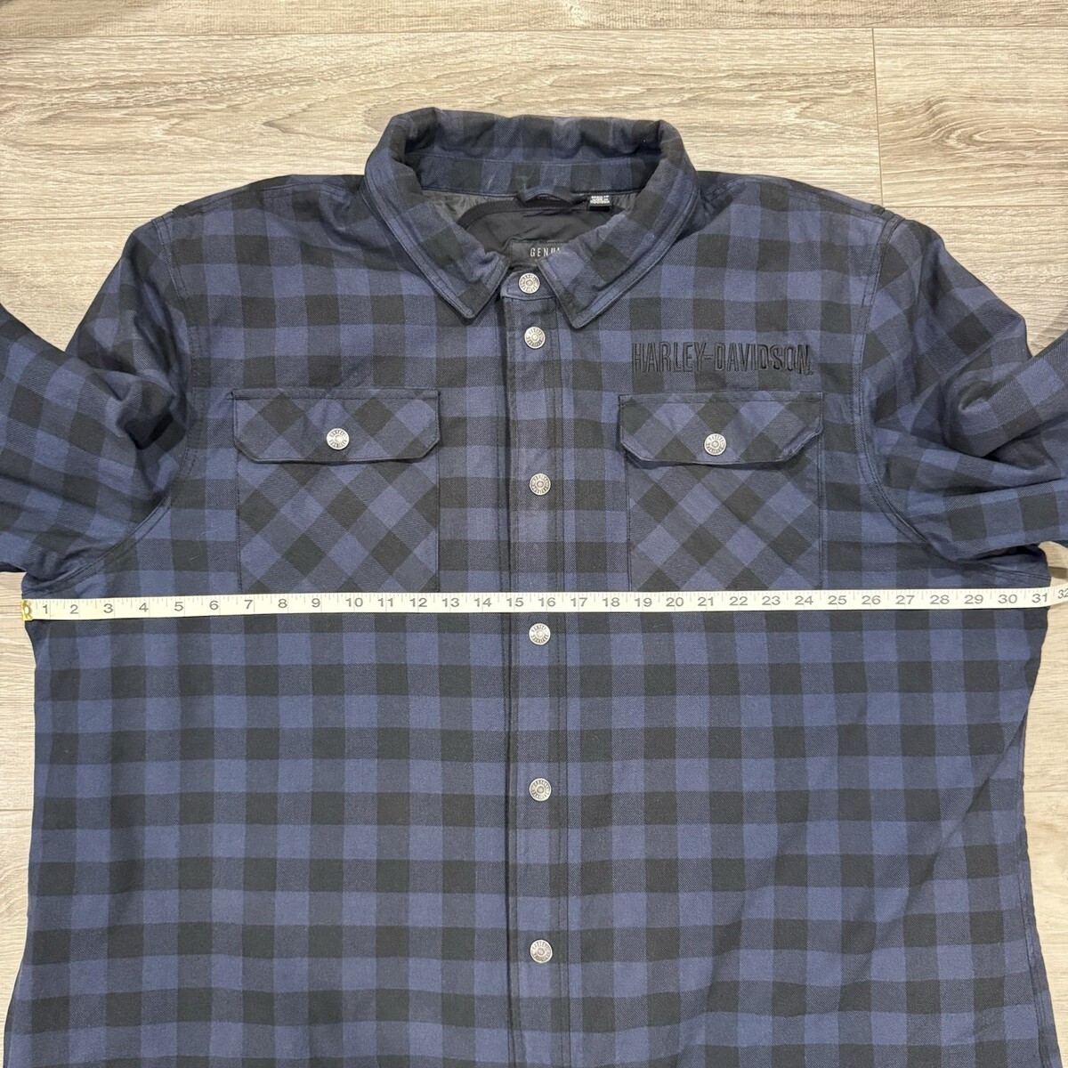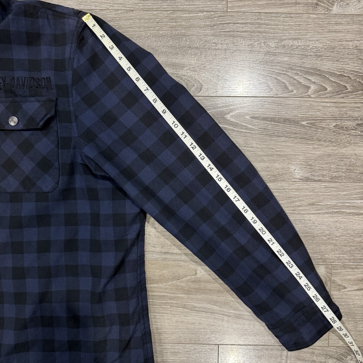 - Harley Davidson Jacket Mens 4XL Blue Black Checked Plaid Armor Sleeves No Pads