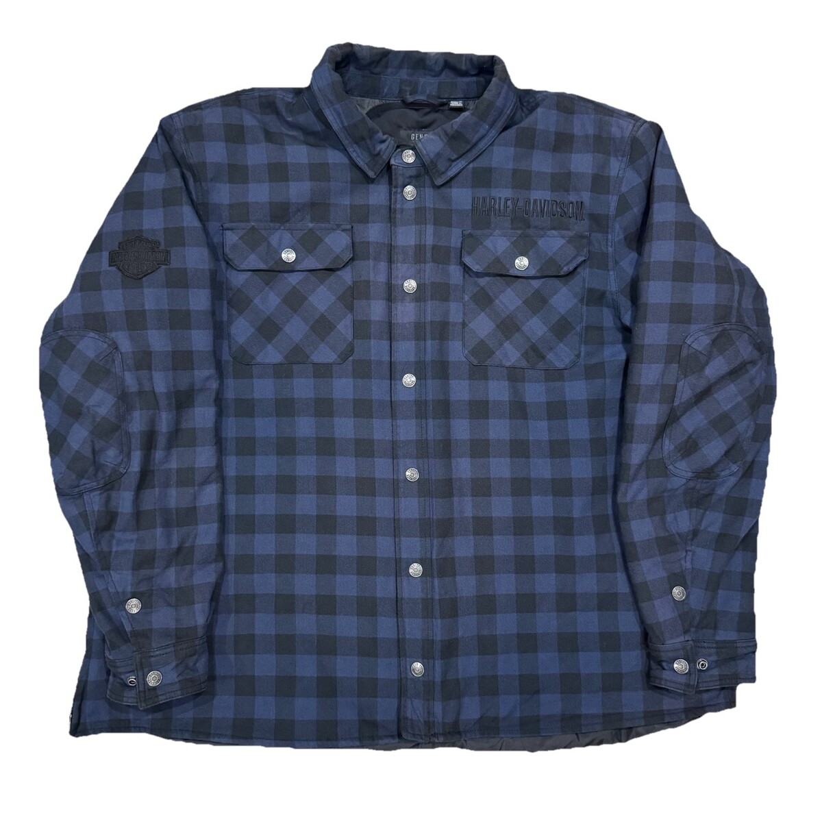 Harley Davidson Jacket Mens 4XL Blue Black Checked Plaid Armor Sleeves No Pads