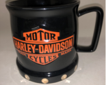 - Harley Davidson “Raised Shield” Coffee Mug Cup Black Orange Dots