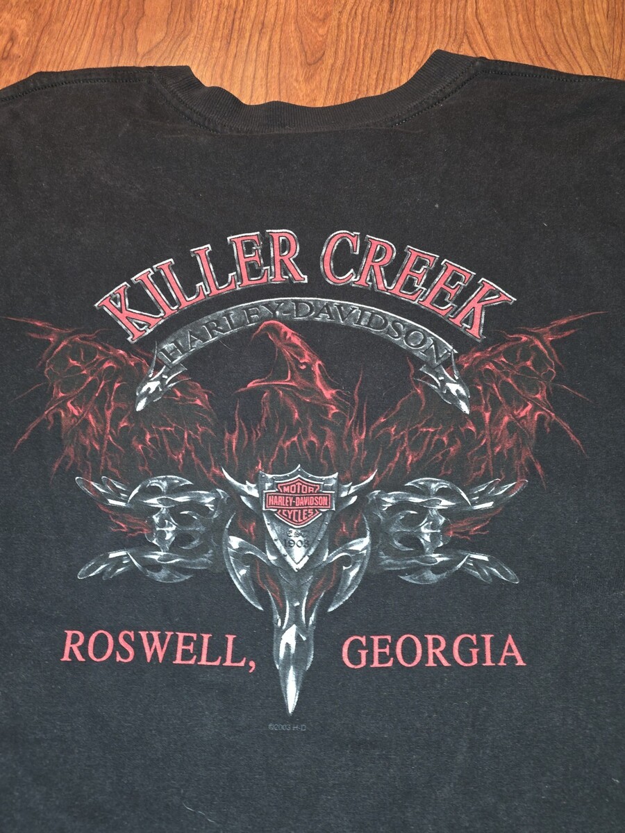 - Harley Davidson T Shirt XXL Killer Creek Roswell Georgia Flame Eagle Black