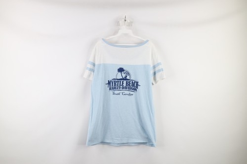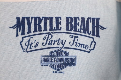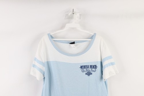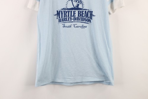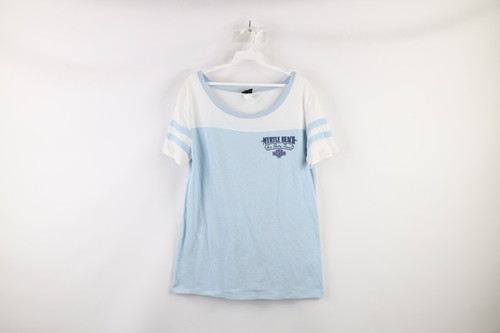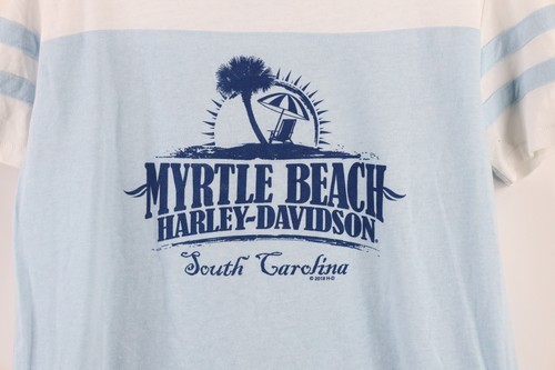 - Harley Davidson Womens Medium Distressed Spell Out Striped Short Sleeve T-Shirt