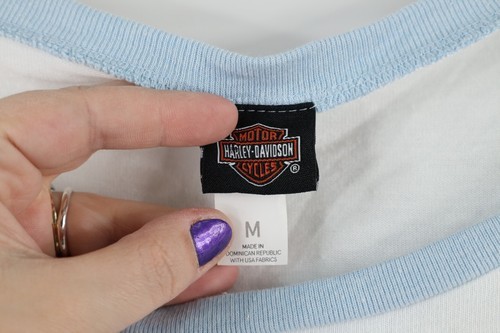 Harley Davidson Womens Medium Distressed Spell Out Striped Short Sleeve T-Shirt