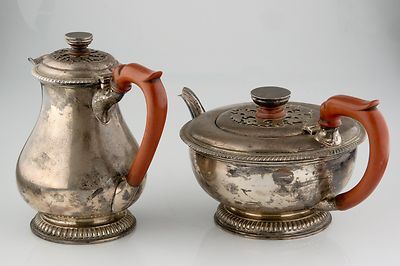 - Harrods Di Londra Argento Set Teiera & Anfora (1916-1917) Rosso Manico Rwb