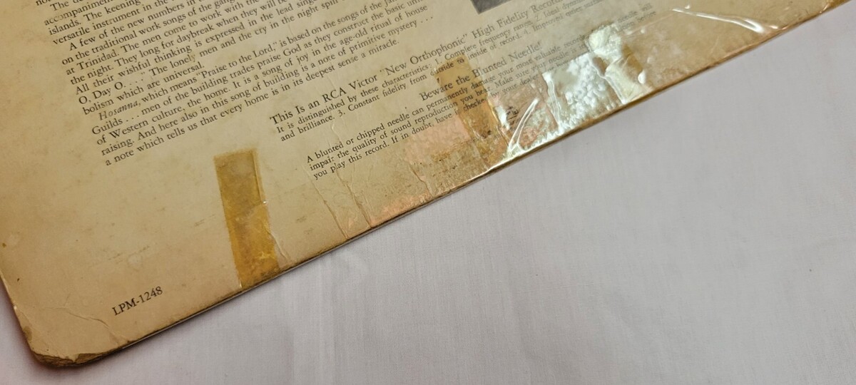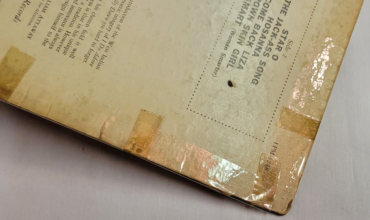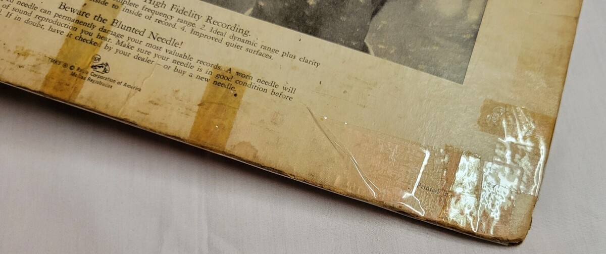Sleeve - POOR(P) - edgewear tearing that has been fixed with tape throughout it's lifetime