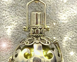 Formed of filigreed brass wound in spiraling arcs of sacred geometry, this ornate ball locket holds within its heart a golden chime sphere- a microcosm of the celestial harmonies that govern fate, luck, and abundance. When shaken softly, it releases a tone like the faint laughter of angels through crystal halls. The ancients called such tones Eolas, meaning “the reminder”- for each sound stirs remembrance of divine order within the human heart.