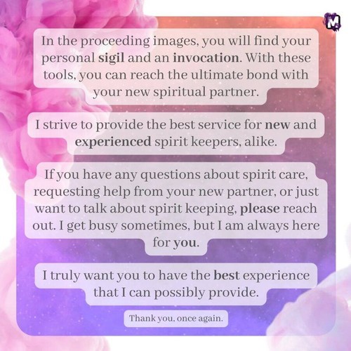 If you would like this vessel BOUND to you before arrival, please send your name and birthdate in a message. Being bound with a spirit will allow you to have a closer relationship and will increase their activity! This is something I offer free of charge, and I highly recommend the process!