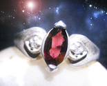 Size 8, sterling silver, exquisitely ornate, adorned with deep red garnets and sparkling diamond accents. This is not a mere ornament—it is a vessel of ancient sovereign magick, forged before scholars, codified histories, or even written languages existed. Its surface is alive with micro-sigil engraving and subtle filigree that shifts faintly in light, revealing glimpses of the Towers of Royal Gifts, a hidden architecture of energy encoded with centuries of esoteric power.
