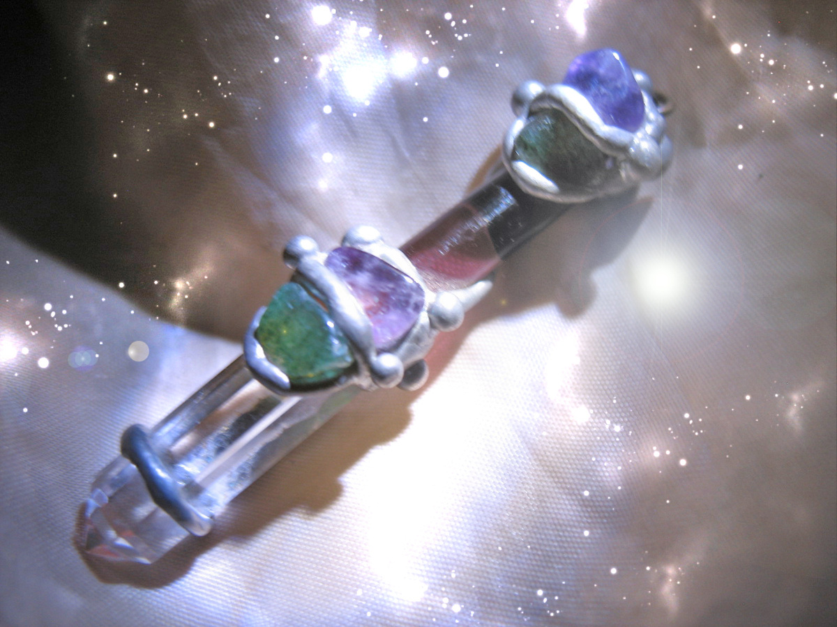 Upon completing all eight phrases, encircle the pendant with both hands and envision a spiral of radiant energy connecting your heart, solar plexus, and crown to the wand. Sense its power flowing into you, synchronizing with your field, and anchoring the energy permanently.