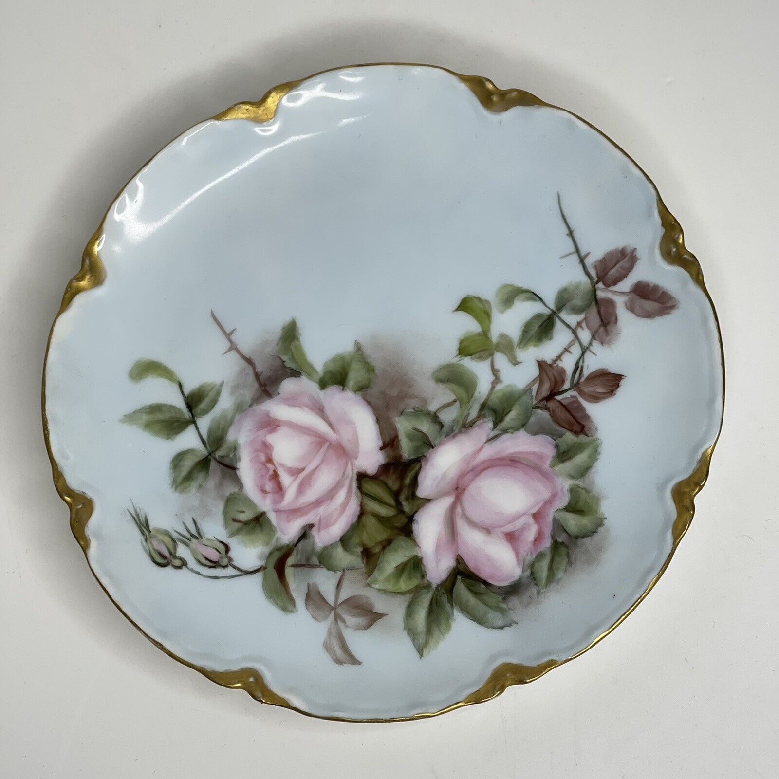 - Haviland France Limoges 6" Roses Gold Hand Painted Cabinet Plate H.S