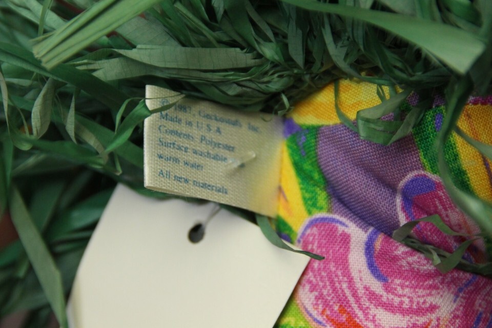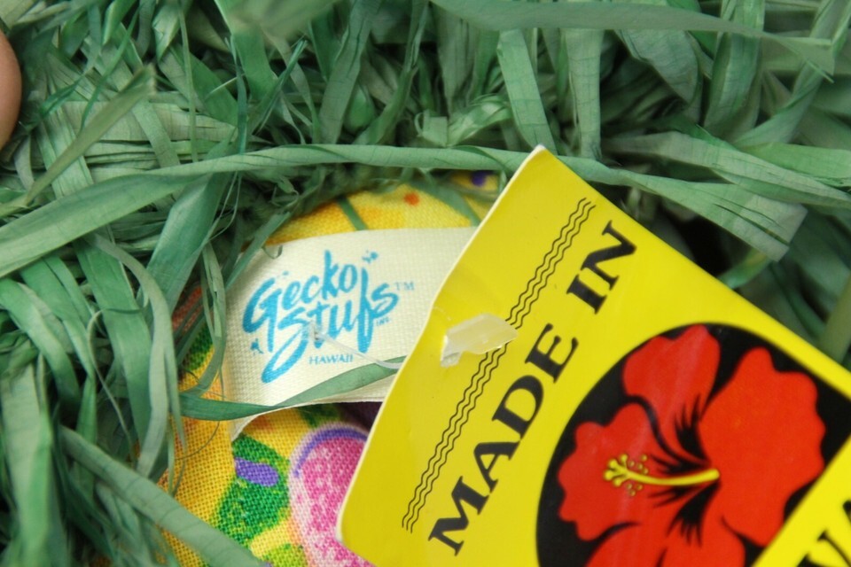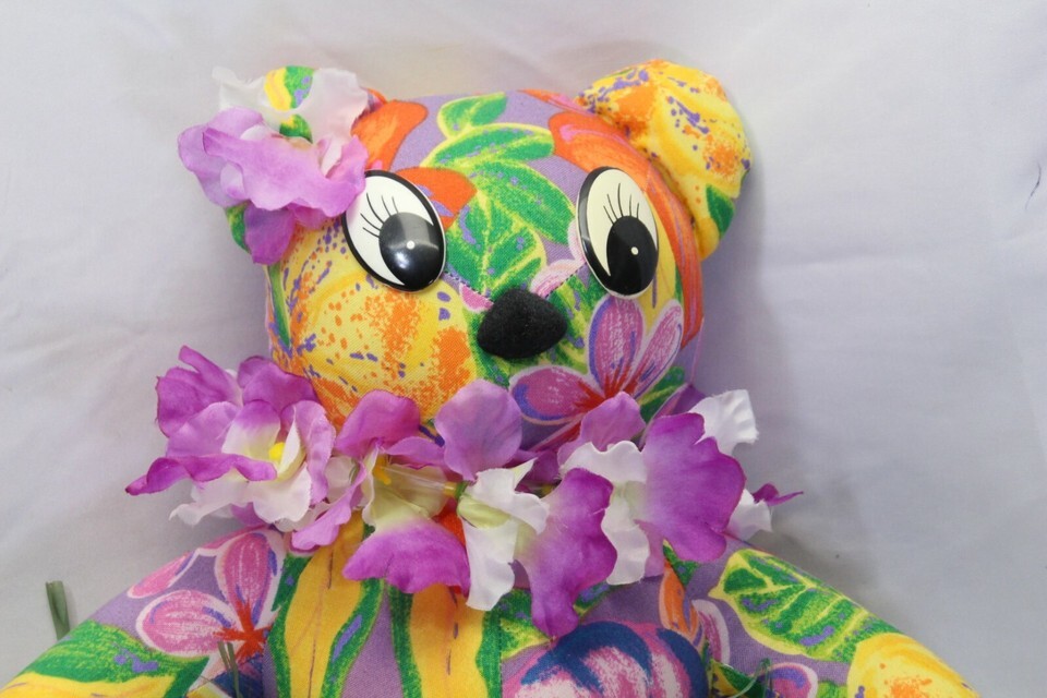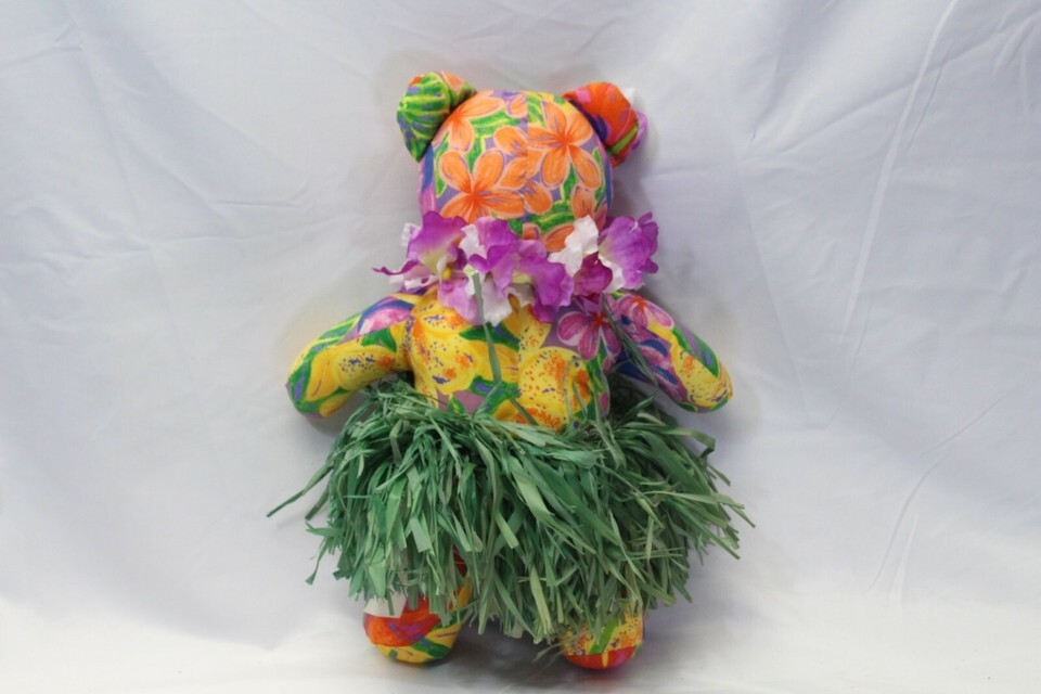- Hawaiian Plush Bear Gecko Stufs 1987 14" Lay Hibiscus Heliconia w/Hula Skirt