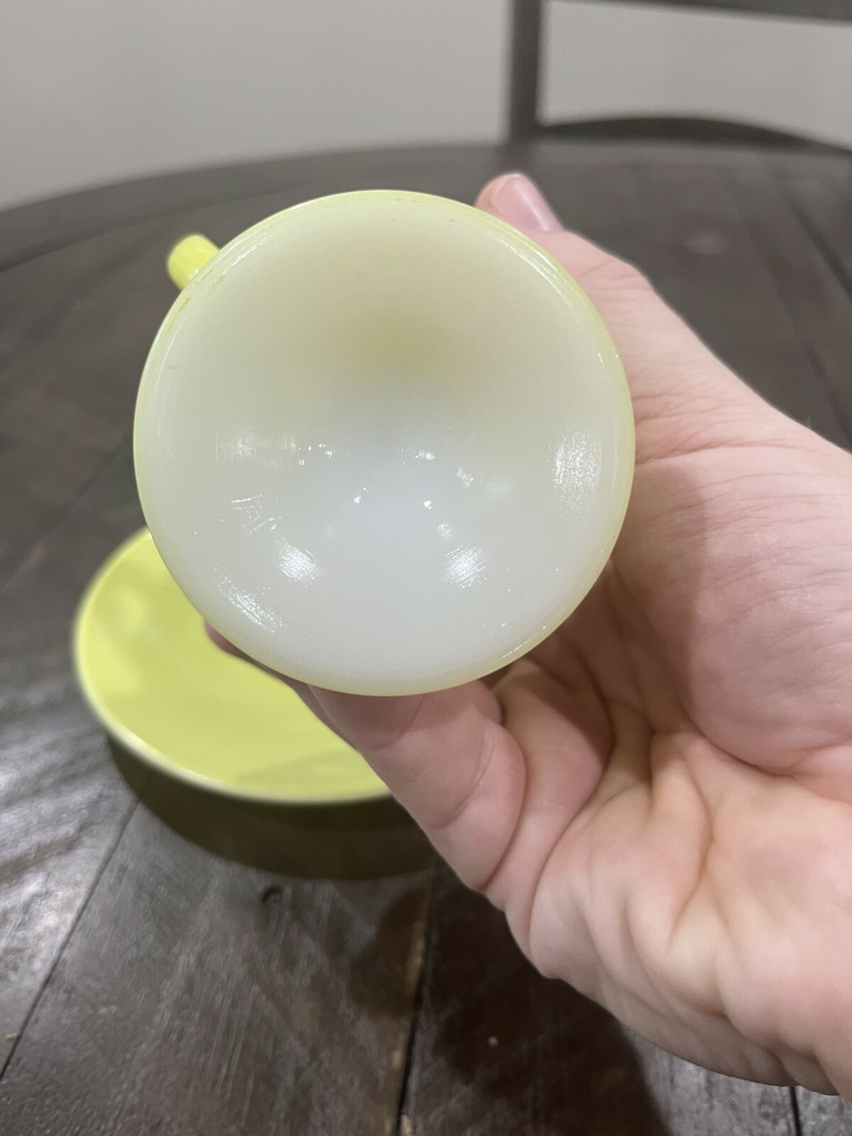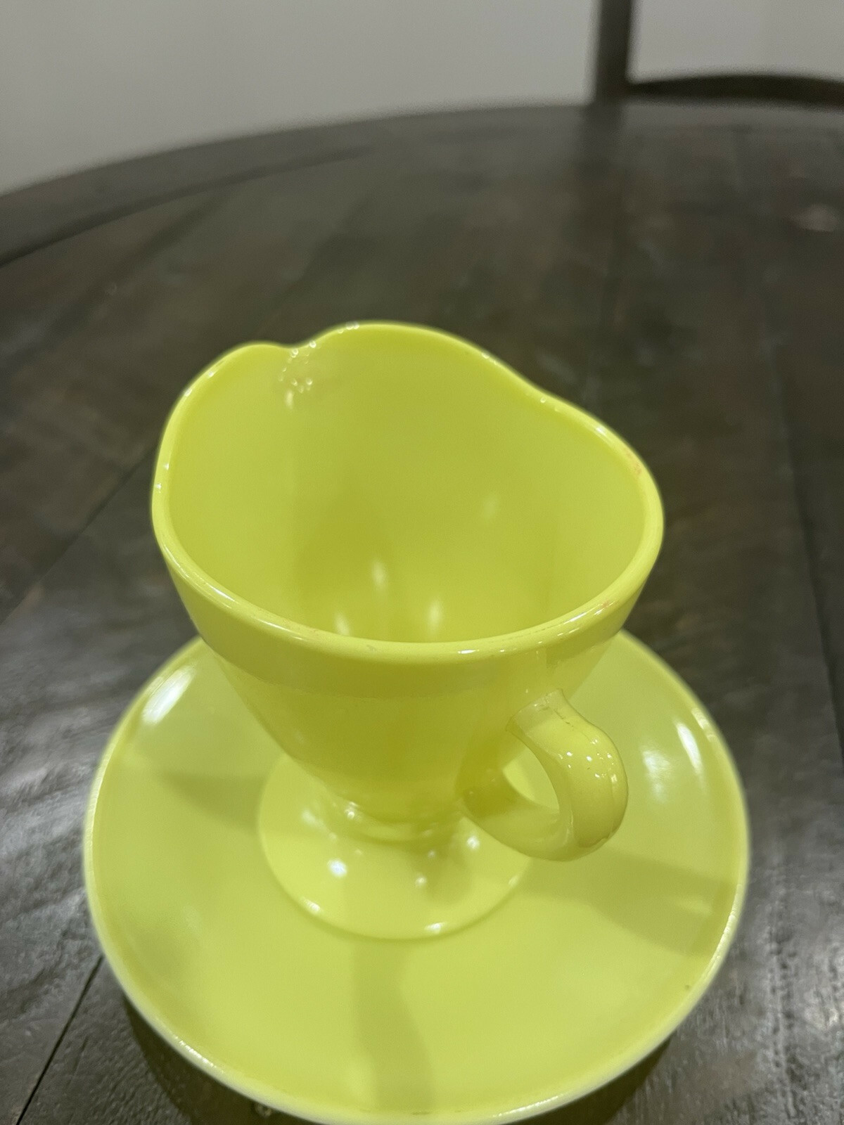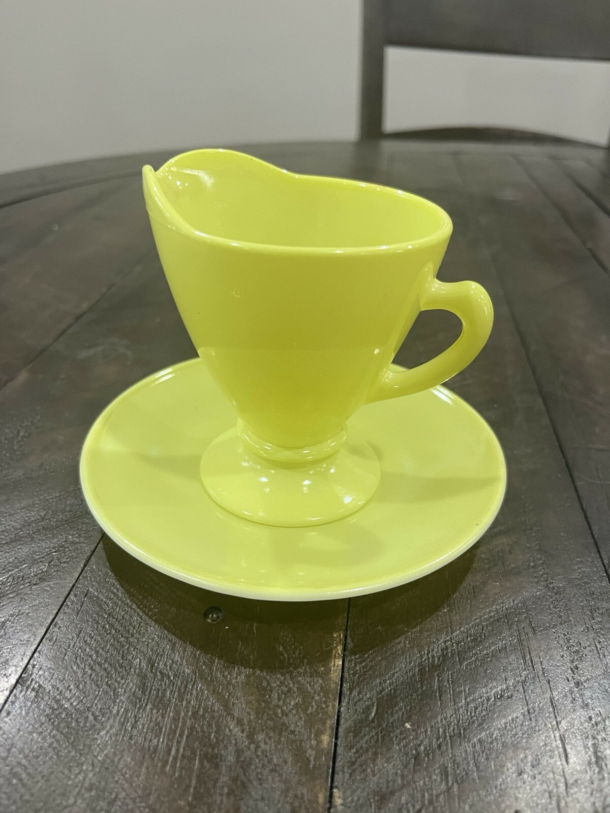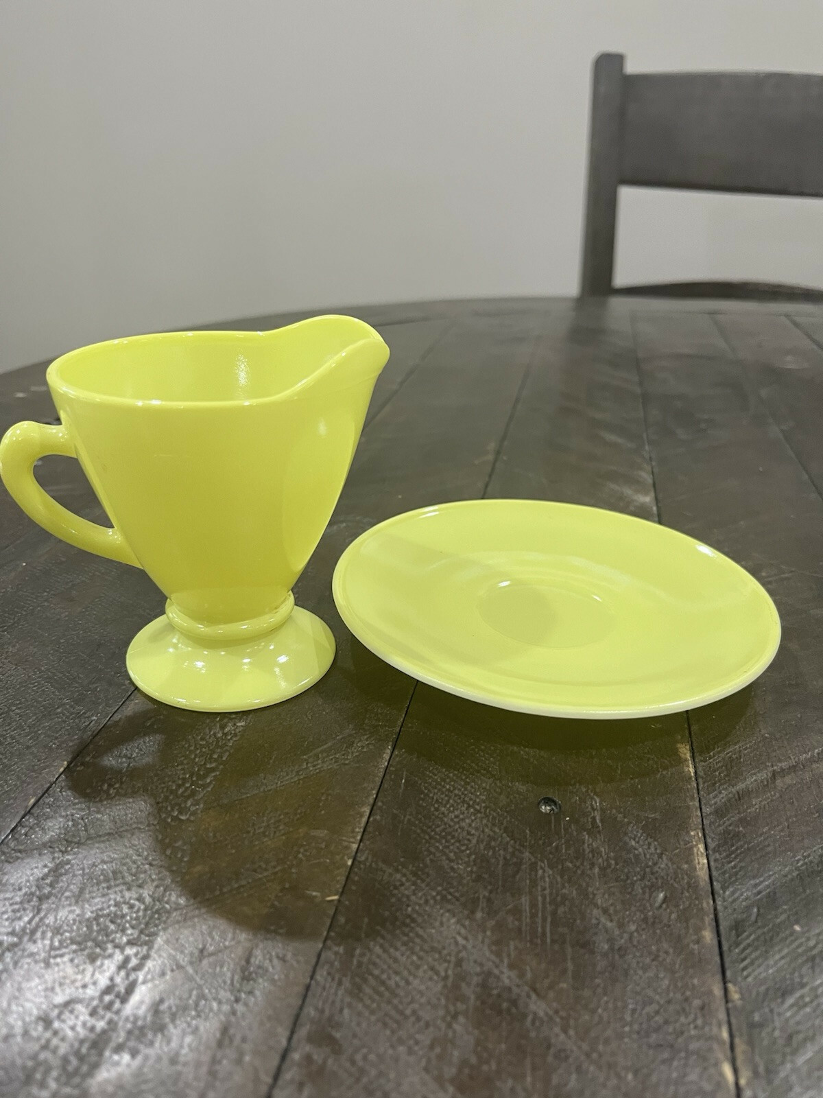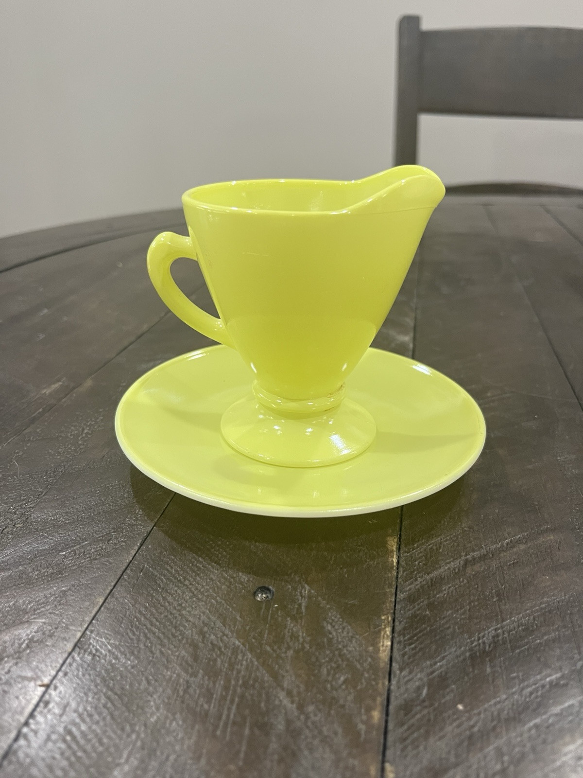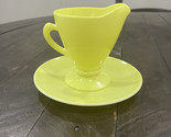 - Hazel Atlas Chartreuse Lime Green Yellow Glass Cream and Saucer Platonite