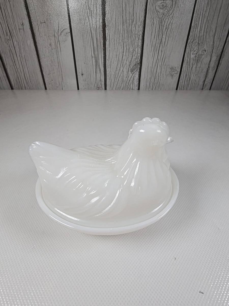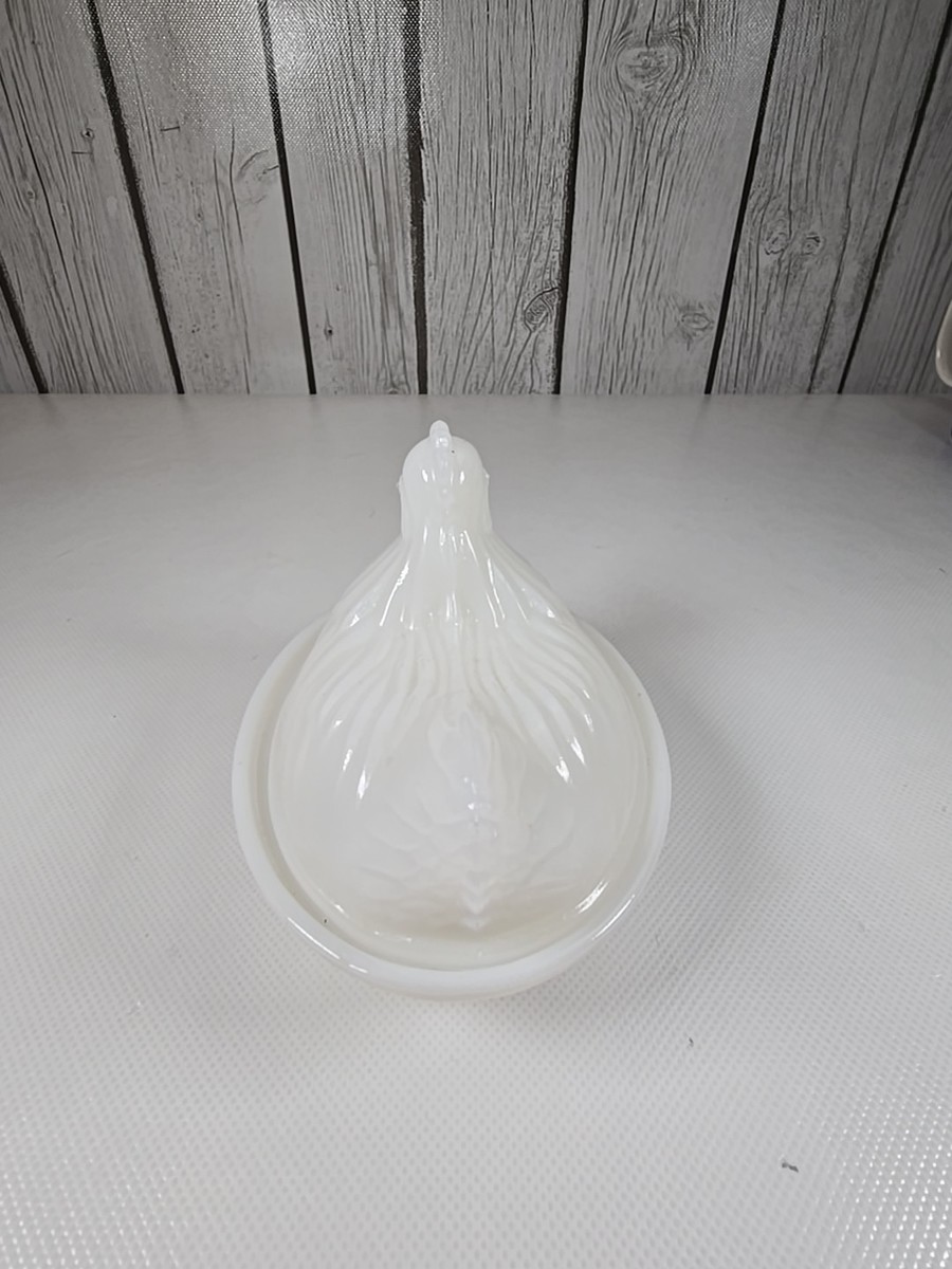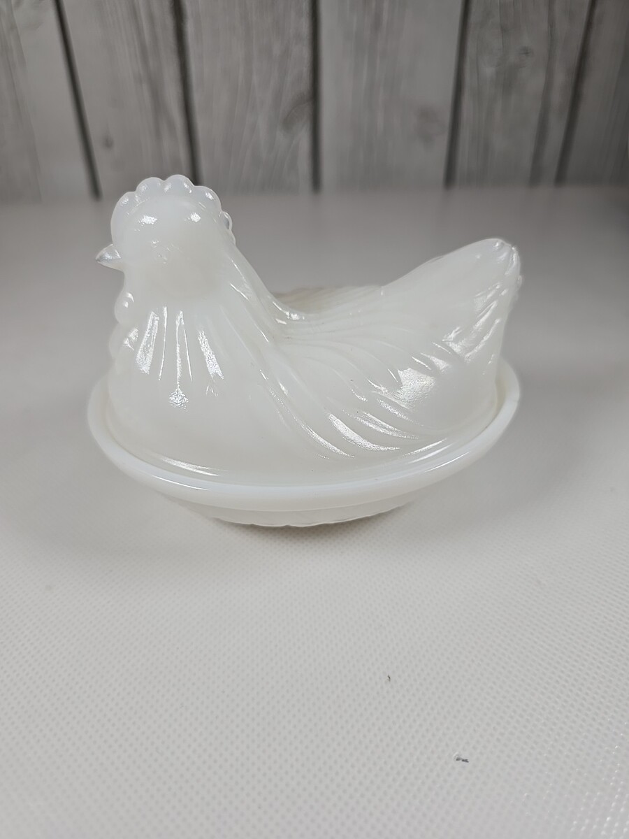 - Hazel Atlas Hen Covered White Milk Glass Nest Covered Dish Vintage Serveware
