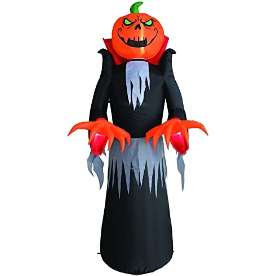 This inflatable head spinning figurine is a great way to decorate for the Halloween season. Just plug it in, stake it down and watch the magic unfold. Features. Easy setup, self inflates in seconds. Lights up. Collapses for offseason storageSpecifications. Height 7.87. Length 7.87. Power Source PlugIn. Product Type Inflatable. Width 9.45. Design Head Spinning Pumpkin. Weight 3.96 lbs