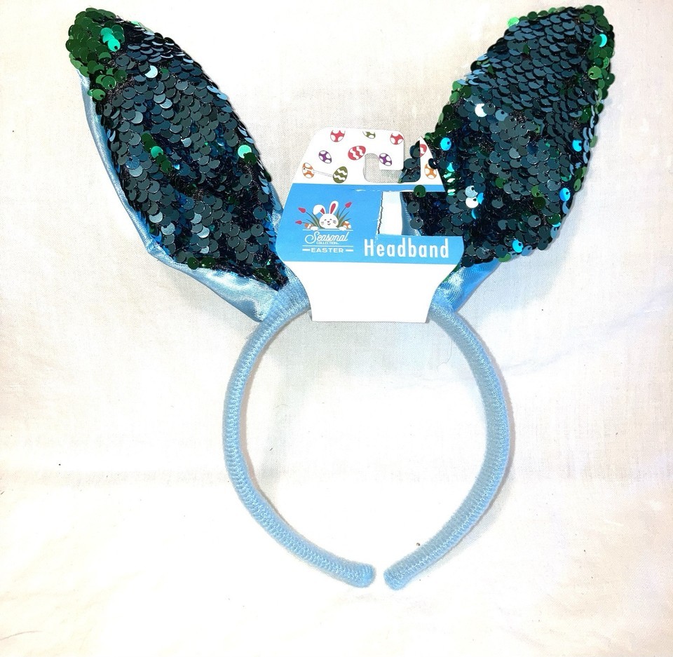 - Headband Easter Bunny Ears Blue Sequins Sparkle Girls new