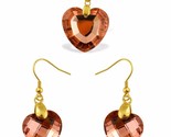 - Heart Pendant and Earrings Set Pink Austrian Crystal Large stones