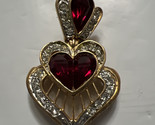 This is a stunning Heart Red on Gold Tone Pendant, perfect for special occasions like Christmas, anniversaries, birthdays, and Valentine's Day. The pendant features a heart-shaped red main stone set in a gold tone metal, exuding a theme of love and hearts. The elegant design makes it a great addition to any jewelry collection, adding a touch of romance and sophistication to any outfit.