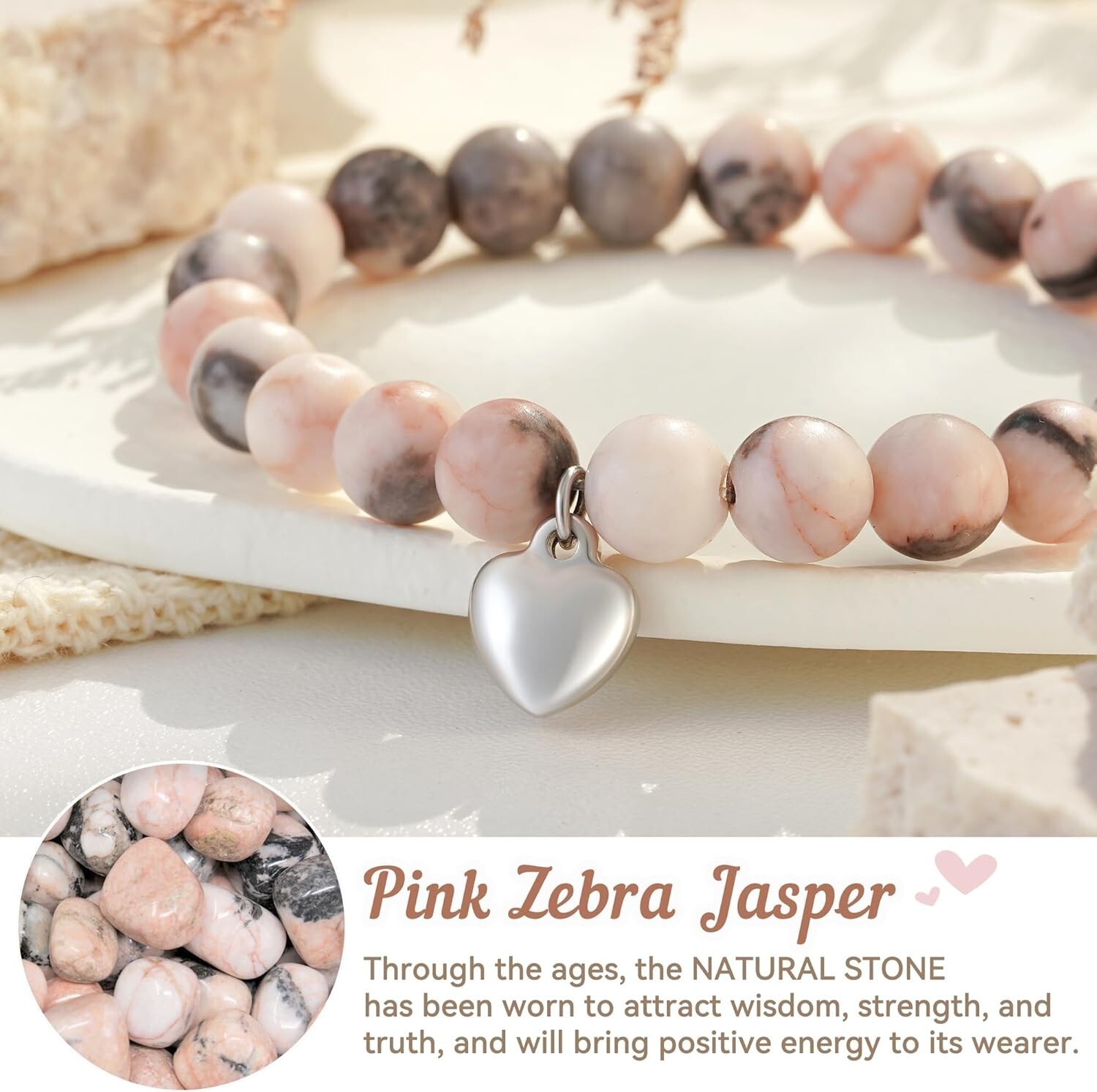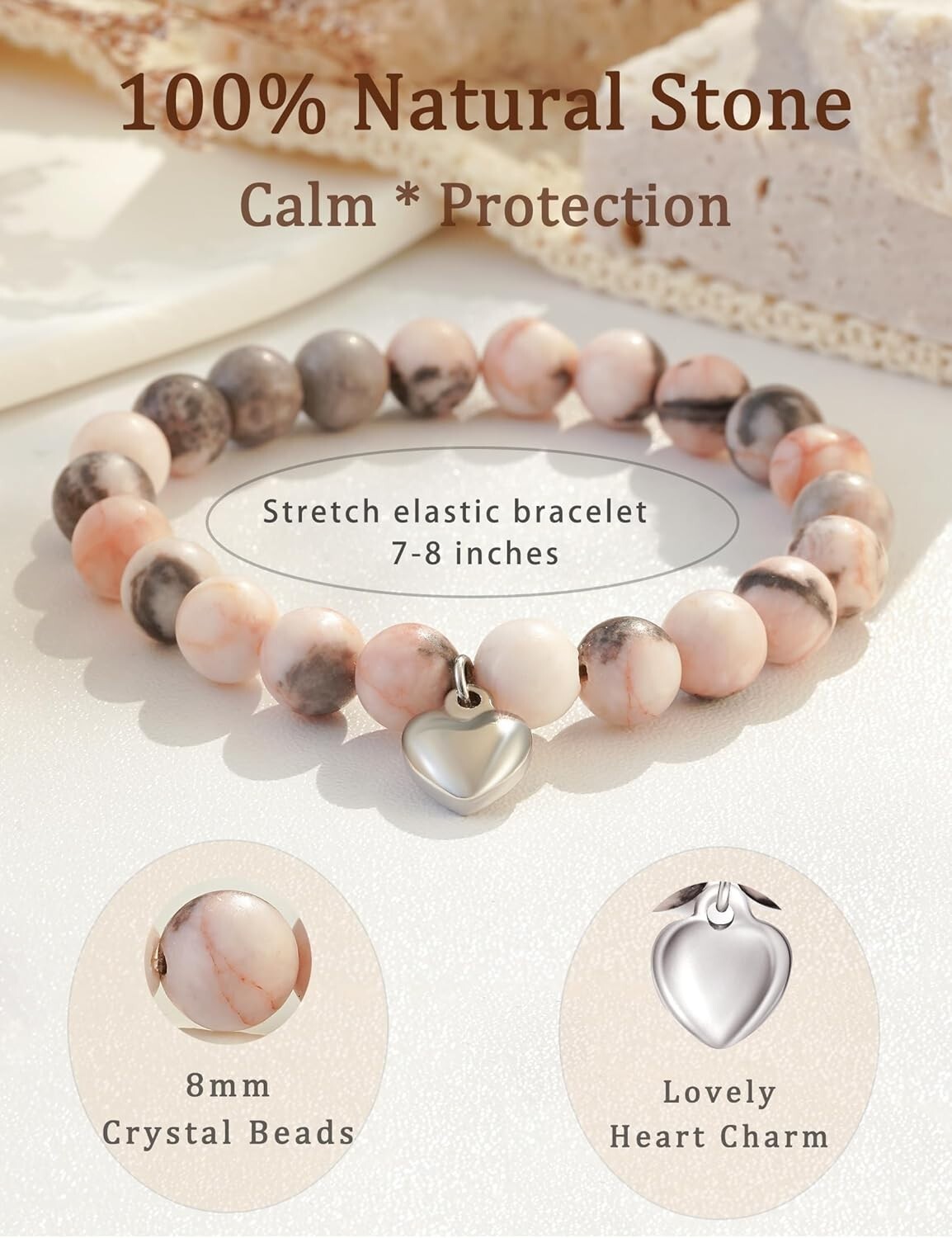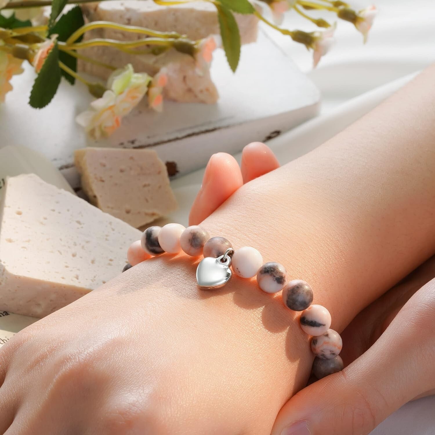 Express your love and appreciation with our Heart Bracelet, crafted from 8mm natural stones known for attracting wisdom, strength, and truth. The adjustable elastic fit ensures comfort for most women. Each gift set includes a beautifully designed velvet pouch, a heartfelt quotes card, and a blank card for your own message, making it perfect for weddings, bridal showers, birthdays, or holidays. Designed by HGDEER, a young brand dedicated to handcrafted quality, this gift is sure to touch your daughter-in-law's heart.