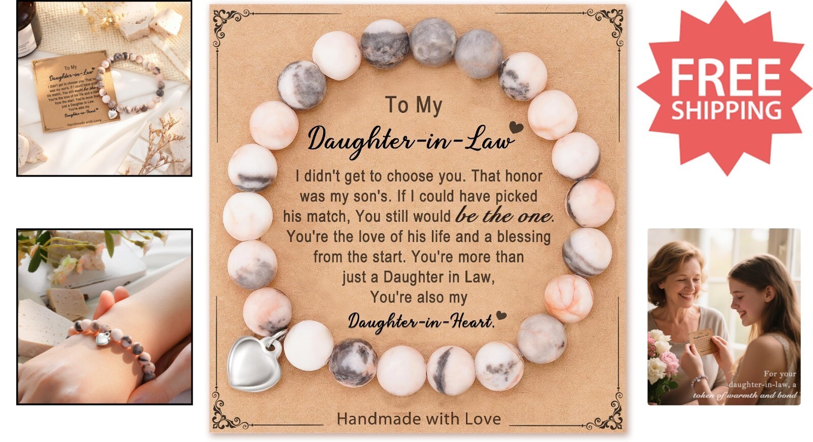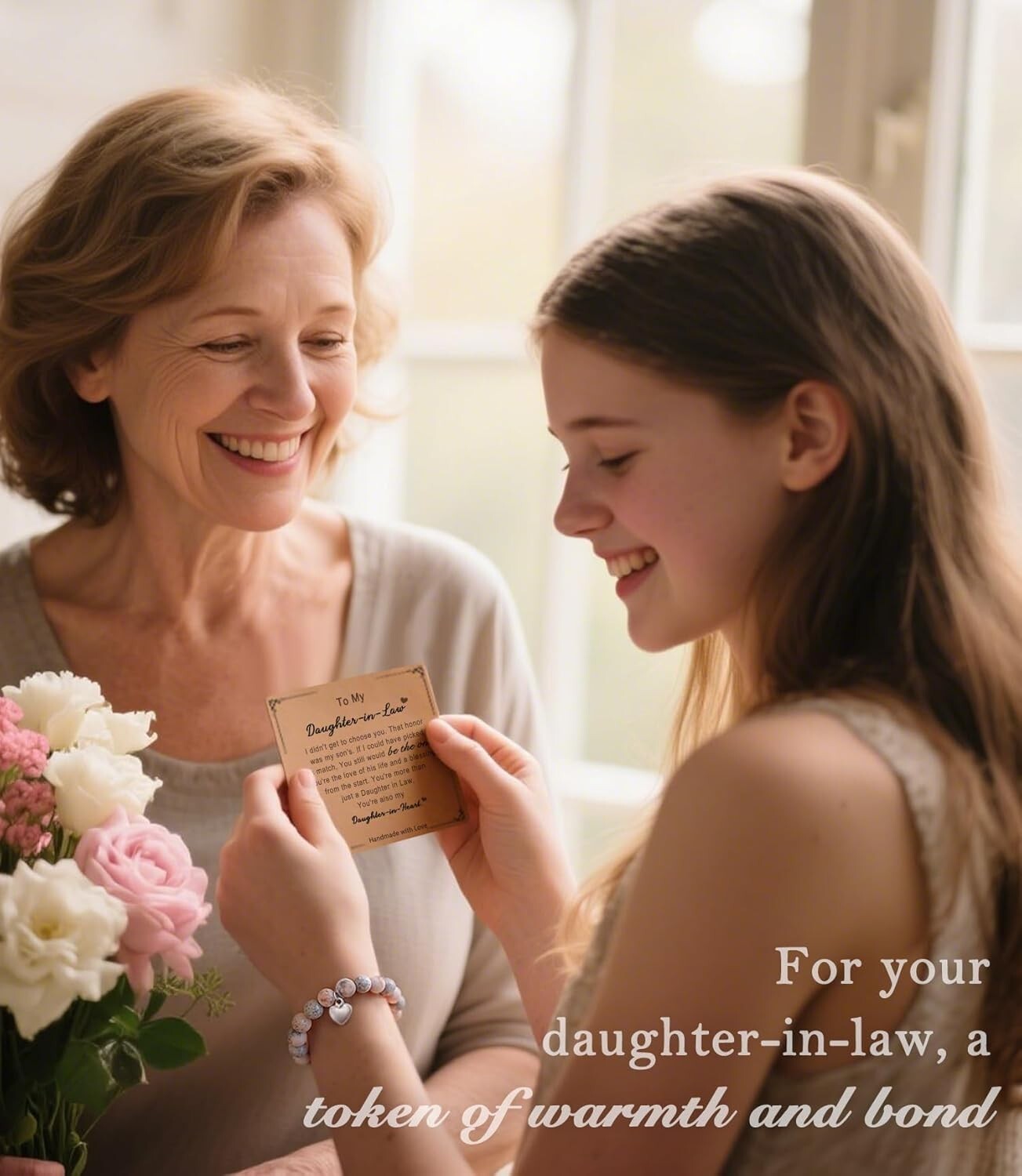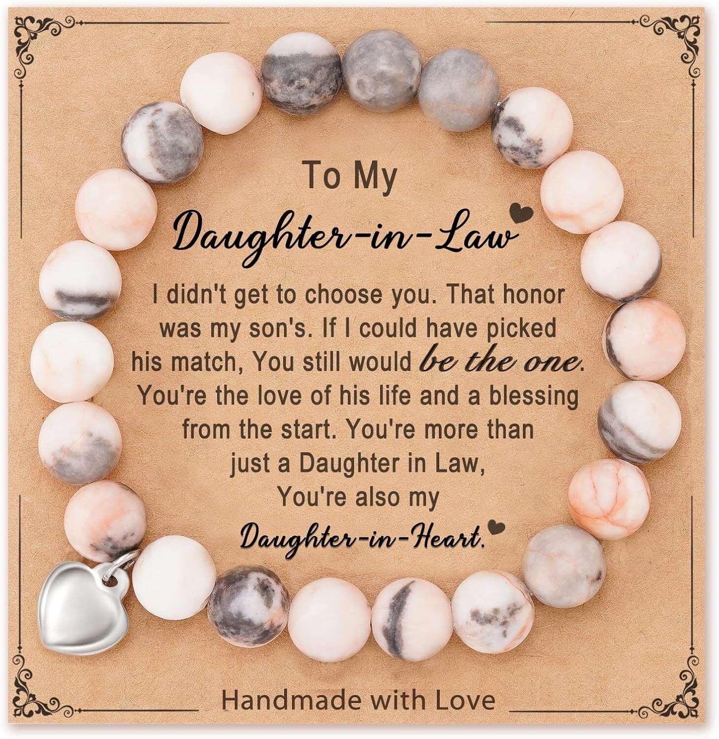 - Heartfelt Natural Stone Bracelet Gift with Quote Card for In-Law Relationships