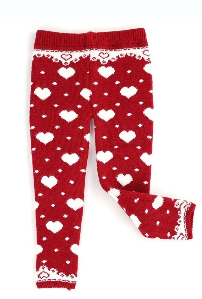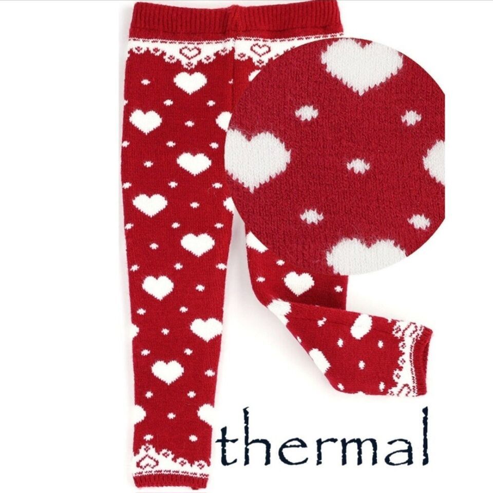 - Hearts Design Thermal Thick Baby Girl Leggings. Valentines Day Kids Snow Pants.