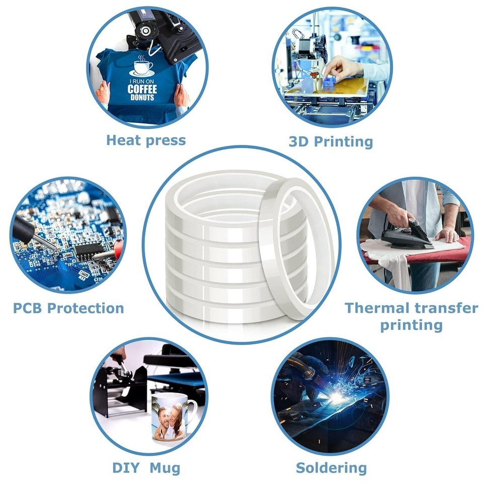 - Heat Resistant Tape for Sublimation - 500°F, 10mm x 33m, 6 Rolls Transparent