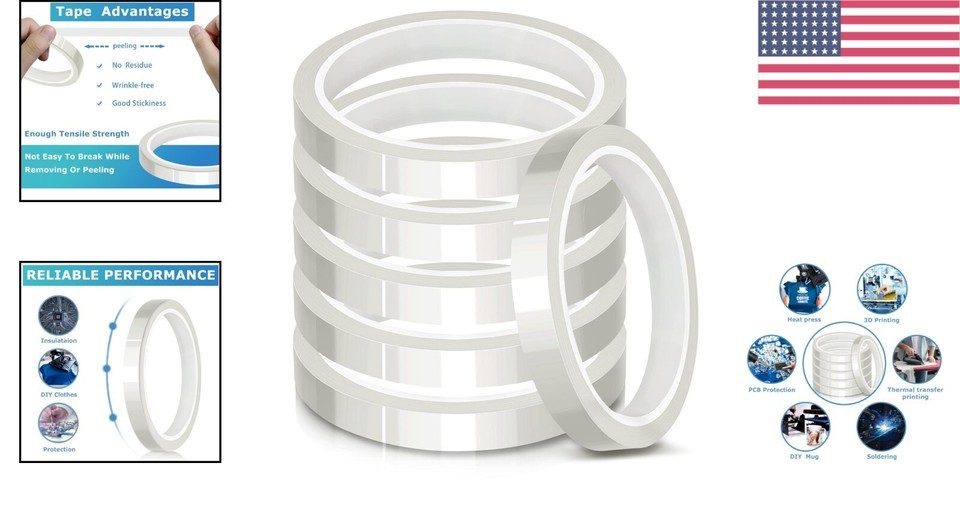 Experience the luxury of reliability and versatility with our Heat Resistant Tape for Sublimation. Designed to withstand extreme temperatures, this tape is the perfect ally for both crafting and protection of electronic components. Whether you are sublimating your favorite T-shirt or ensuring the safety of your electronic devices, this high-quality tape offers peace of mind.