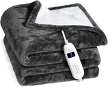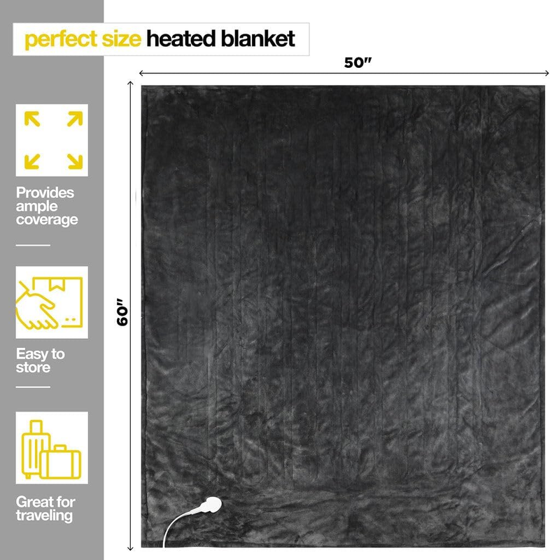 Heated Blanket, Machine Washable Extremely Soft Comfortable Electric Blanket Throw Fast Heating with Hand Controller 10 Heating Settings Auto Shut-Off (Gray, 50 X 60)